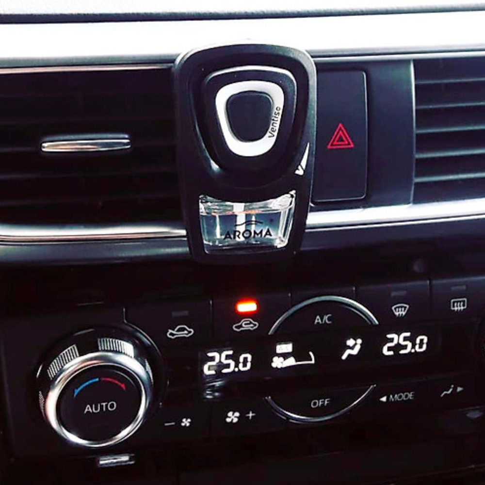 Ароматизатор Aroma Car Ventis предназначен для установки на обдув/дефлектор автомобиля и изготовлен по технологии WICK (жидкий ароматизатор, заключенный в стеклянный флакон, испаряющийся через целлюлозный фитиль, помещенный в горлышко флакона). В этом ароматизаторе имеется возможность регулировать интенсивность запаха. Ароматизатор можно установить на горизонтальную или вертикальную решетки дефлектора.