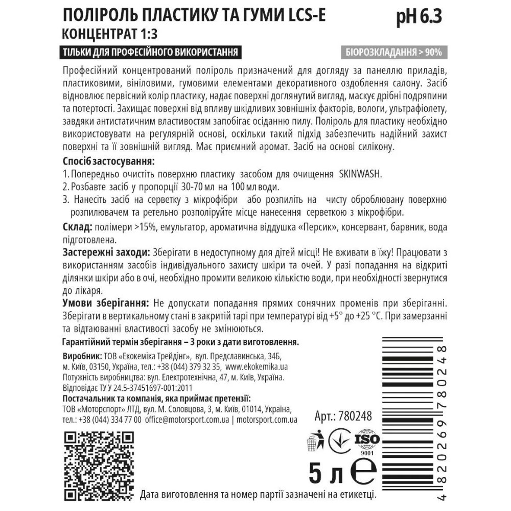 Ekokemika Pro-Line LCS-E – профессиональный концентрат для создания защитного слоя и глубокого блеска пластиковых поверхностей в салоне автомобиля. Формула средства разработана специально для безопасной обработки всех типов пластика, предотвращая его высыхание и растрескивание.