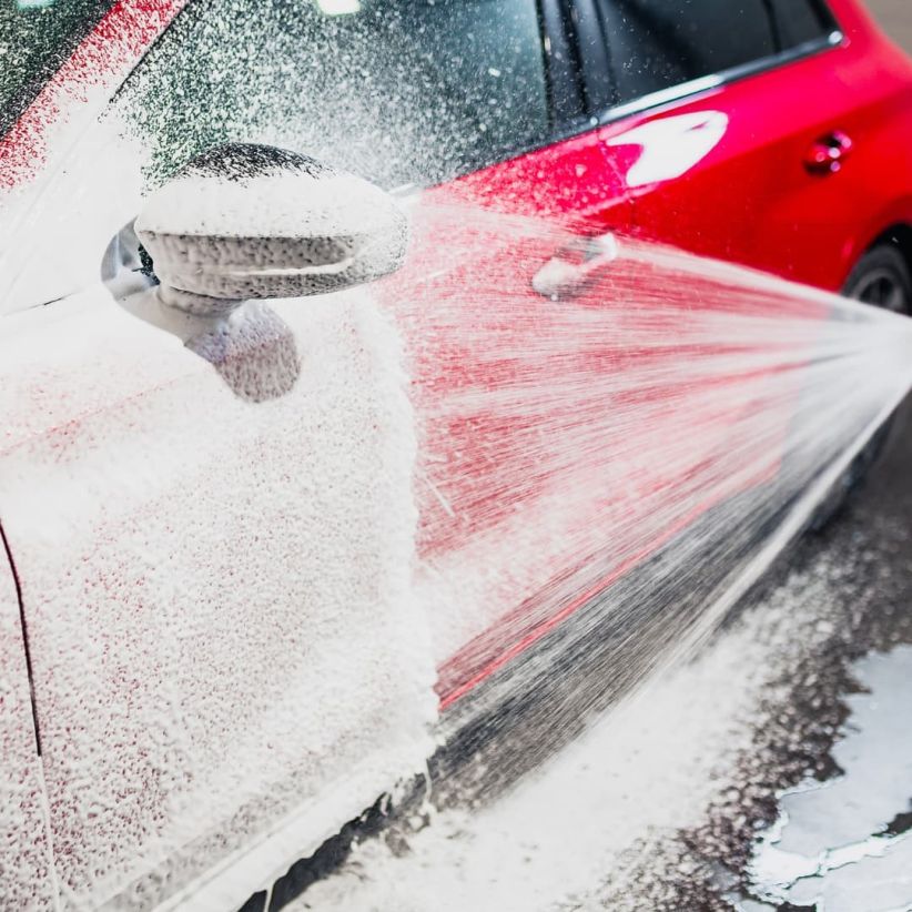 - Нанесіть піну на автомобіль за допомогою піноутворювача, починаючи з нижньої частини кузова.