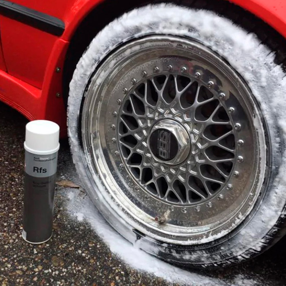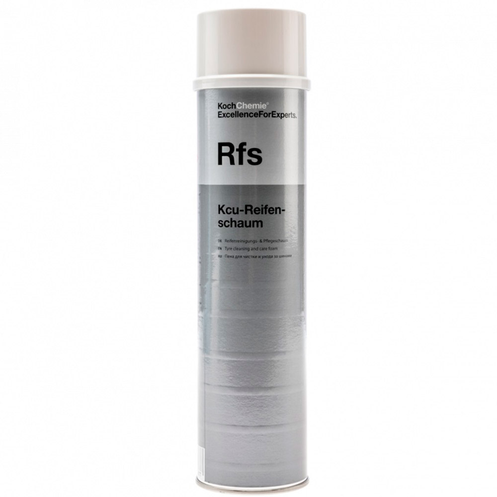 Koch Chemie Rfs Kcu-Reifenschaum для очищення та надання доглянутого вигляду гумовим поверхням. При нанесенні на поверхню автошин утворюється щільна піна, яка, проникаючи під ворс гуми, вичищає її. Розчинений бруд стікає з поверхні разом із піною.