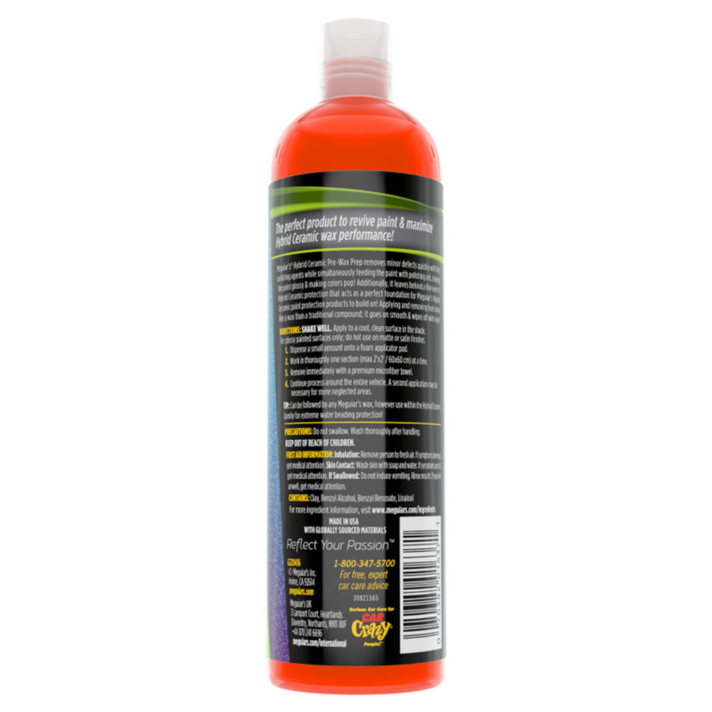 Новинка 2023 року! Pre-Wax Prep від Meguiar's Hybrid Ceramic - ідеальне рішення для видалення легких плям і дефектів, посилення глибини кольору і блиску фарби. Він також є частиною керамічної лінійки, що пропонує вдосконалений захист на основі технології SiO2 Hybrid Ceramic та надзвичайний гідрофобний ефект.