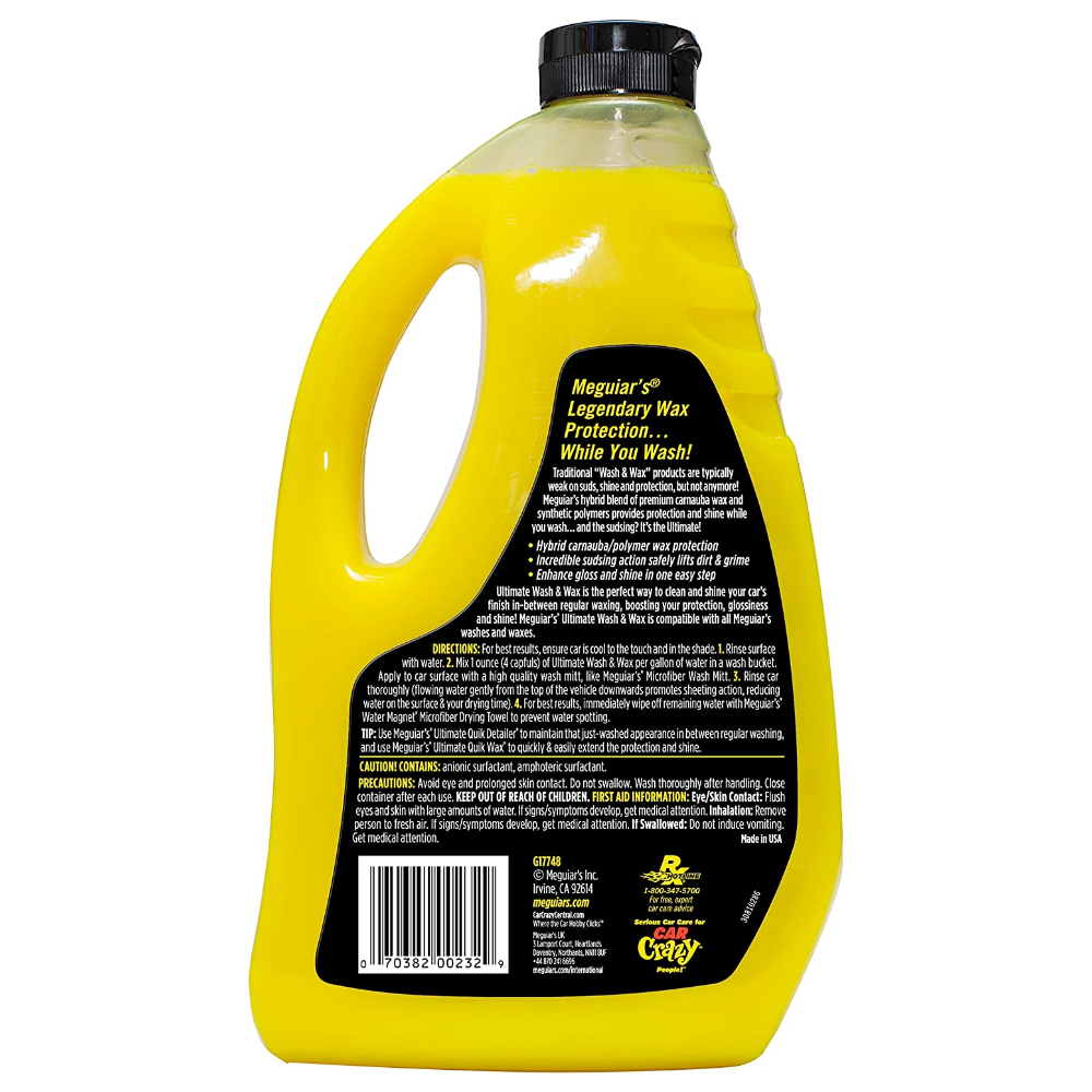 Meguiars Ultimate Wash Wax. Як правило, шампуні, до складу яких входить віск карнауба, погано піняться, але компанія Meguiar's зробила прорив і створила перший автомобільний шампунь з воском і синтетичними полімерами, які не тільки очищає кузов автомобіля, але й забезпечує захист і блиск.
