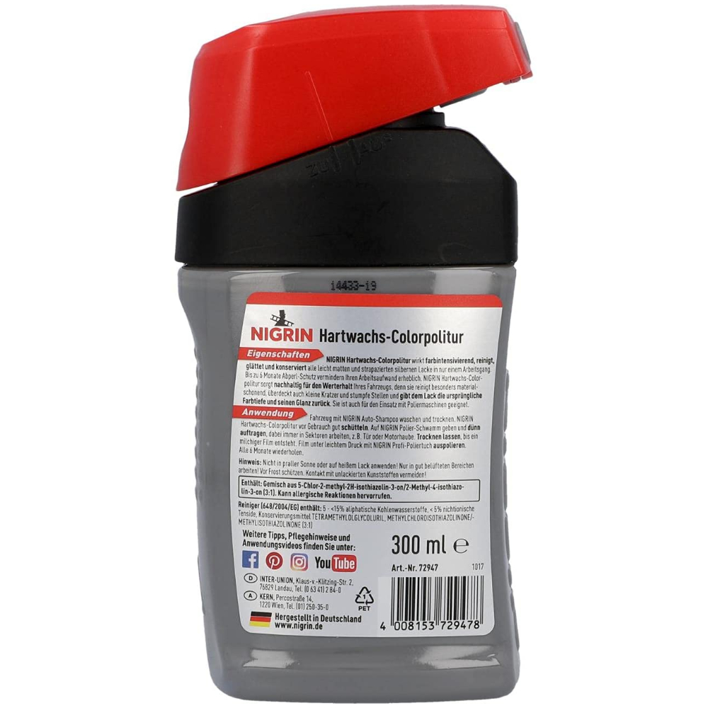 NIGRIN Hartwachs-Colorpolitur Silber сірий (сріблястий) однокроковий поліроль з PTFE 300 мл