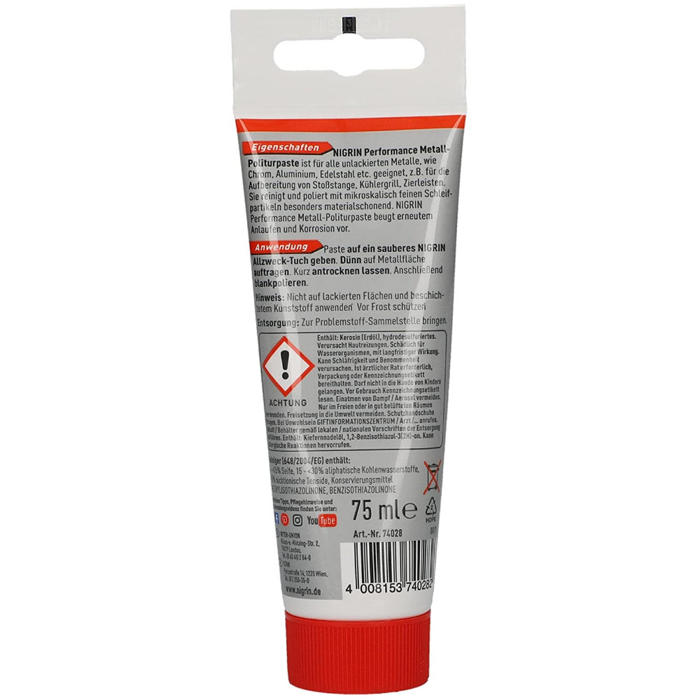 NIGRIN Performance Metal-Politurpaste паста для полірування металів та хрому 75 мл