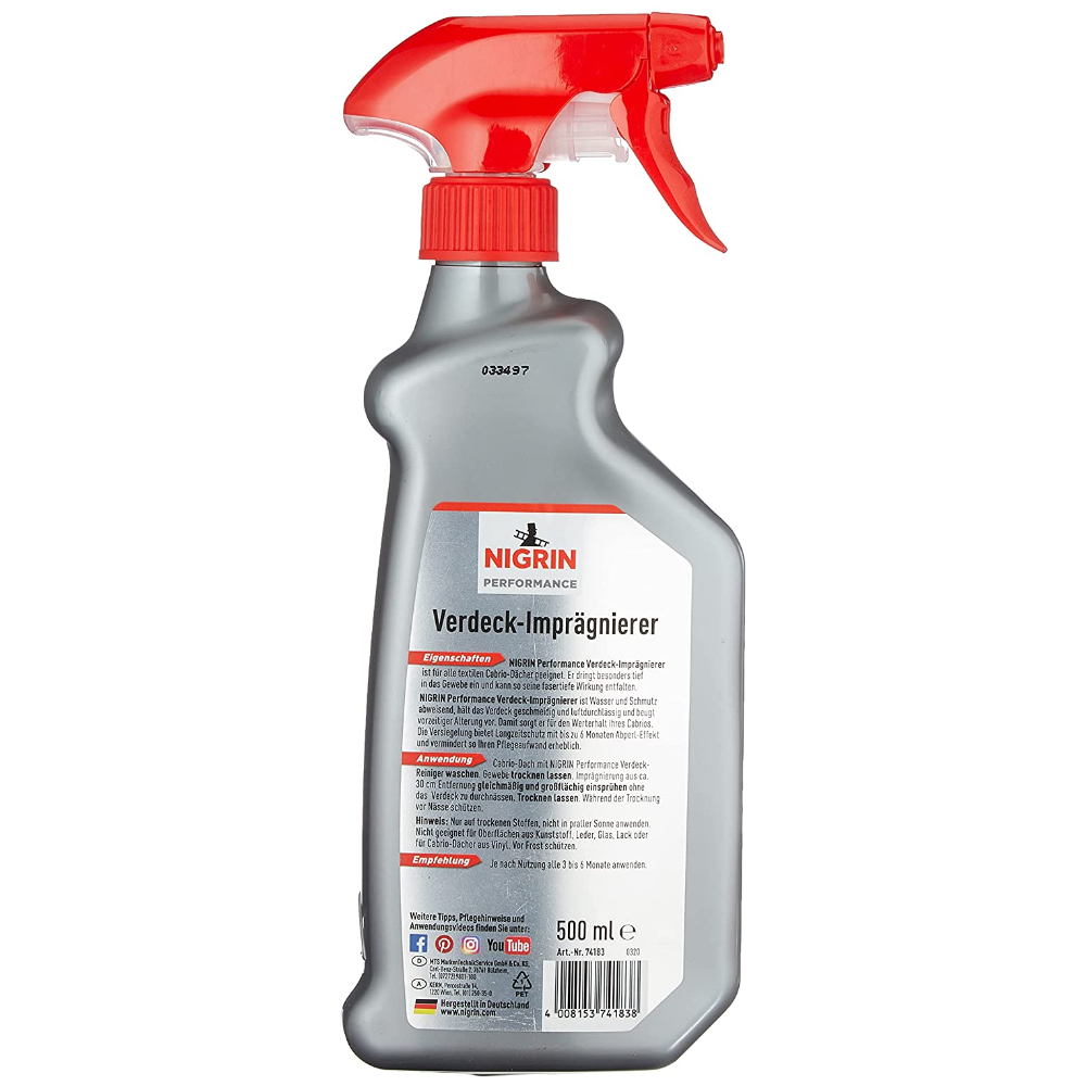NIGRIN Performance Verdeck Imprägnierer защитная пропитка для мягкой крыши кабриолета (Германия) 500 мл