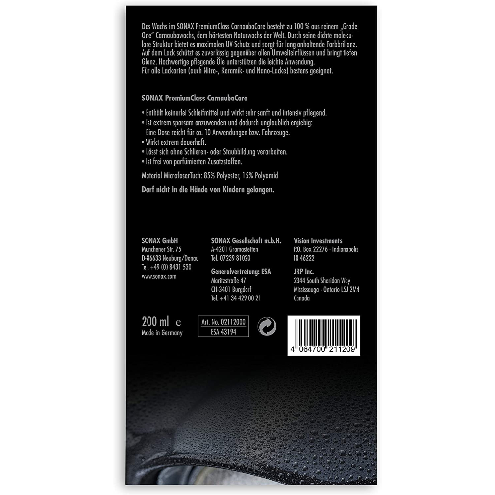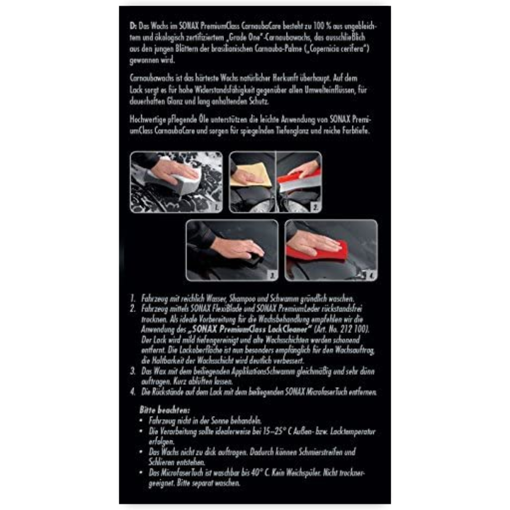 SONAX PREMIUM CLASS Carnauba Care твердый воск карнауба в премиум наборе 200 мл