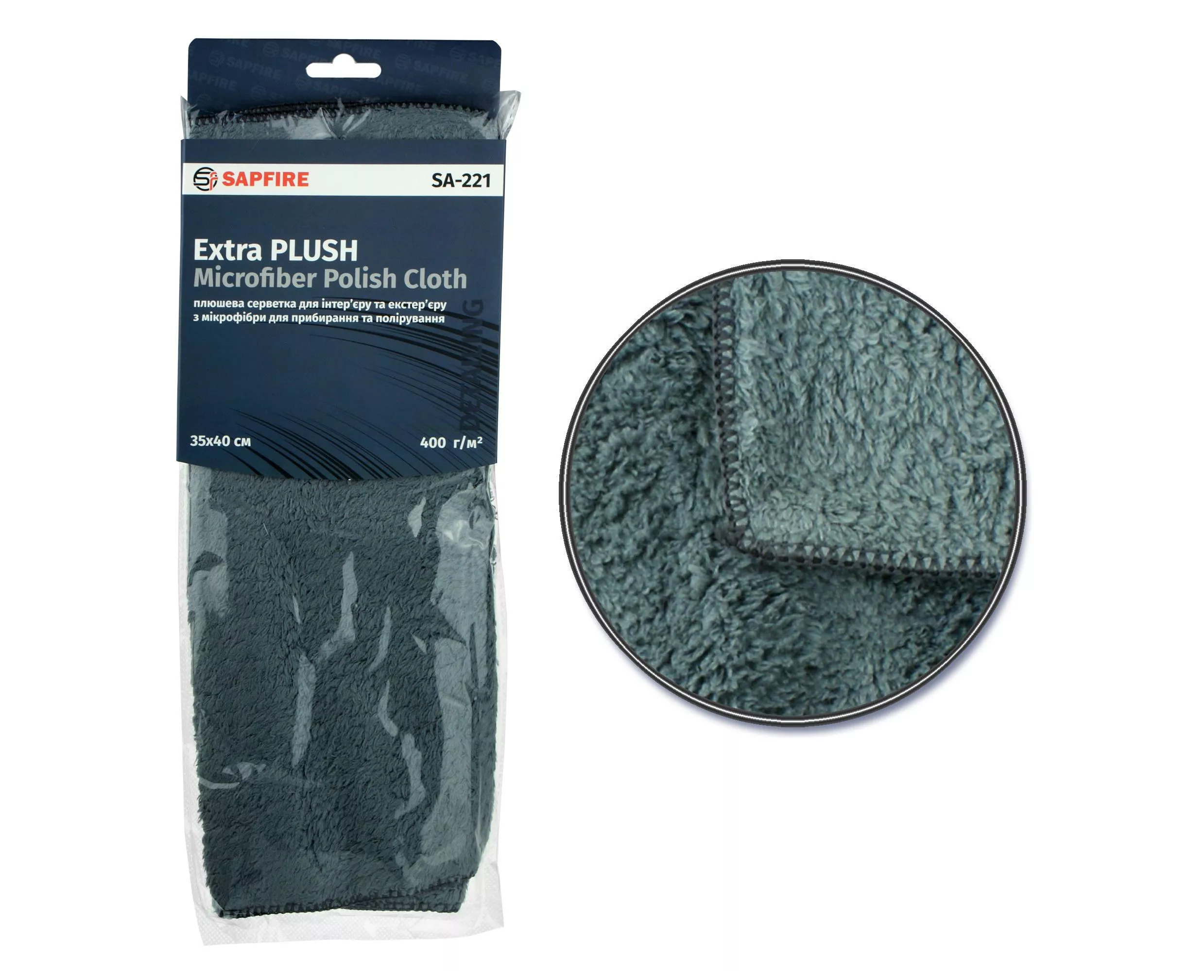 Плюшевая салфетка для интерьера и экстерьера из микрофибры для уборки и полировки Extra Plush Microfiber Polish Cloth SA-221 SAPFIRE (401127).