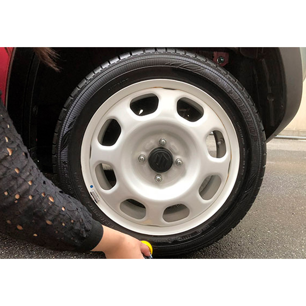 - Стряхніть пляшку, відкрутіть кришку і притисніть фетровою частиною до шини, стискаючи флакон для дозування складу;