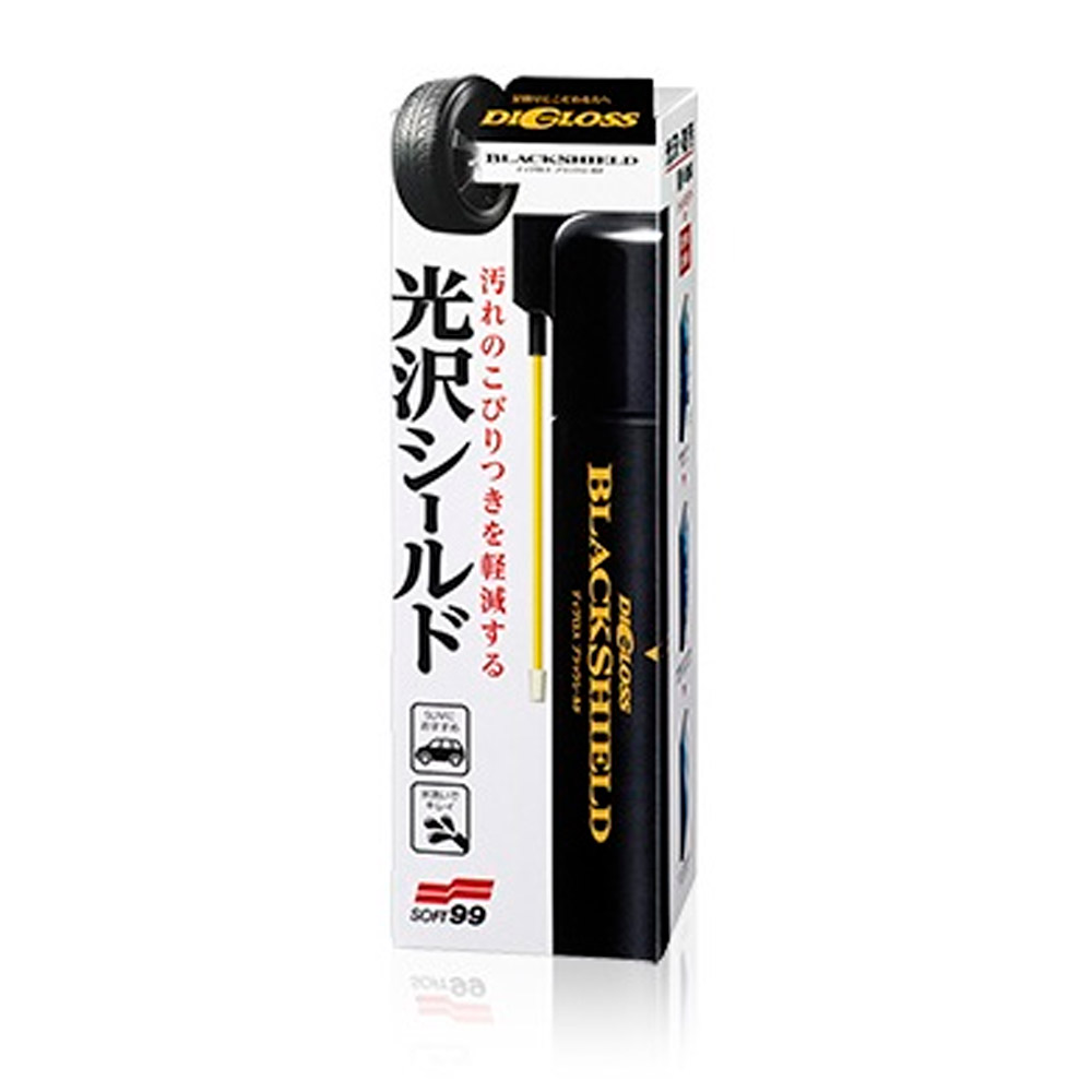 Глянцеве покриття для шин та пластику SOFT99 Digloss Black Shield 420 мл 02086 - полімерний склад аерозольного типу на олійній основі. Надає глянсовий блиск гумі та незабарвленому пластику. Має захисні властивості — робить поверхню гладкою і здатною відштовхувати бруд, запобігаючи її налипання. Подовжена трубка дозволяє легко наносити засіб навіть на важкодоступні ділянки. Що особливо зручно при обробці колісних арок.