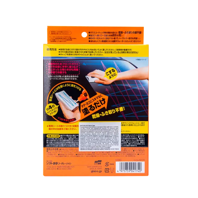 Антидощ для стекол швидкого нанесення SOFT99 GLACO Quick Type 50 мл 04174. Glaco Quick Type— дуже простий у застосуванні, оскільки часто не вимагає попереднього очищення та підготовки скла перед нанесенням. Аплікатор з віскозним покриттям забезпечує швидке та легке нанесення. Не вимагає додаткового розполірування. Кількість нанесення - 10 лобових стекол.