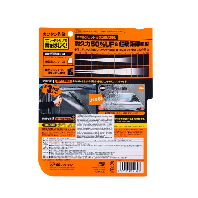 Антидощ для стекол миттєвої дії SOFT99 GLACO "W" Jet Strong 180 мл 04169 терміном на 1 місяць після одного нанесення.
