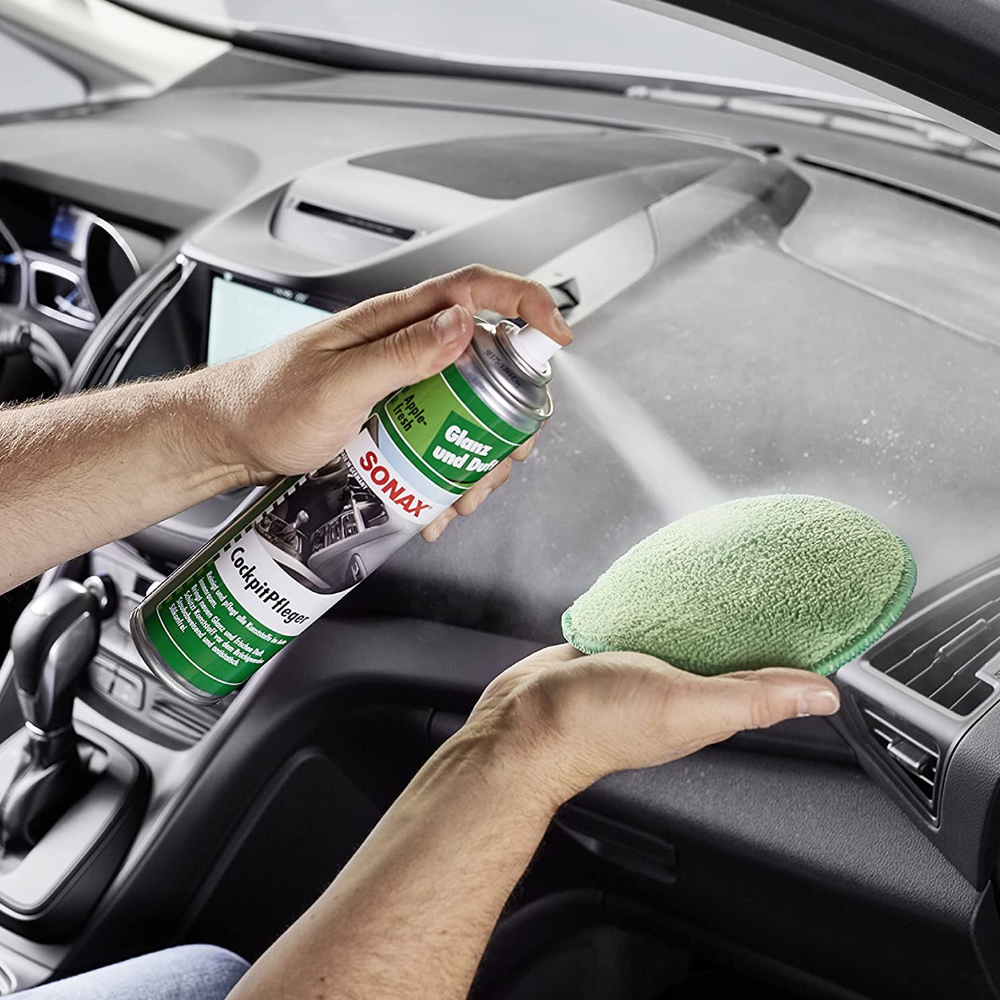 - Распылите средство для ухода за кабиной SONAX на микрофибру или мягкую безворсовую ткань, равномерно распределите – готово;