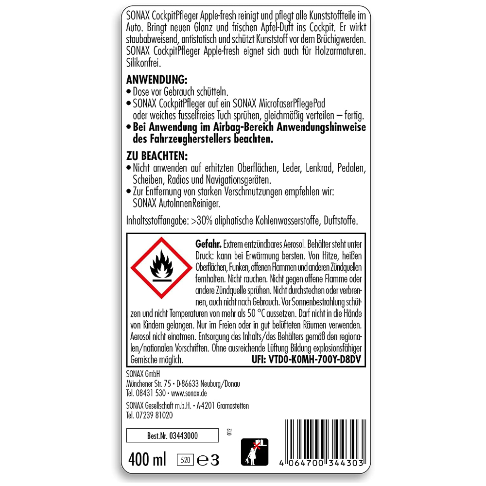 SONAX Cockpitpfleger - apple-fresh очиститель-полироль пластика глянцевый (яблоко) 400 мл