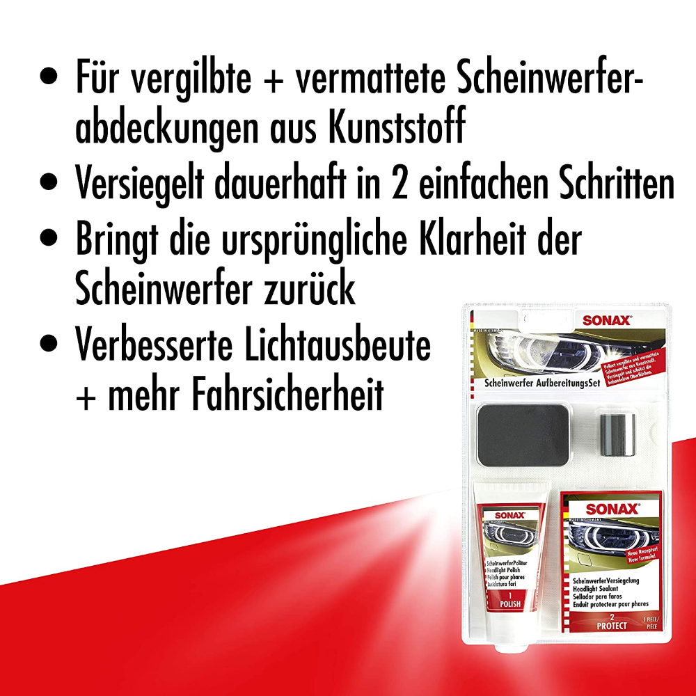 SONAX Headlight Restoration Kit набір для реставрації та захисту пластикових фар 89 мл