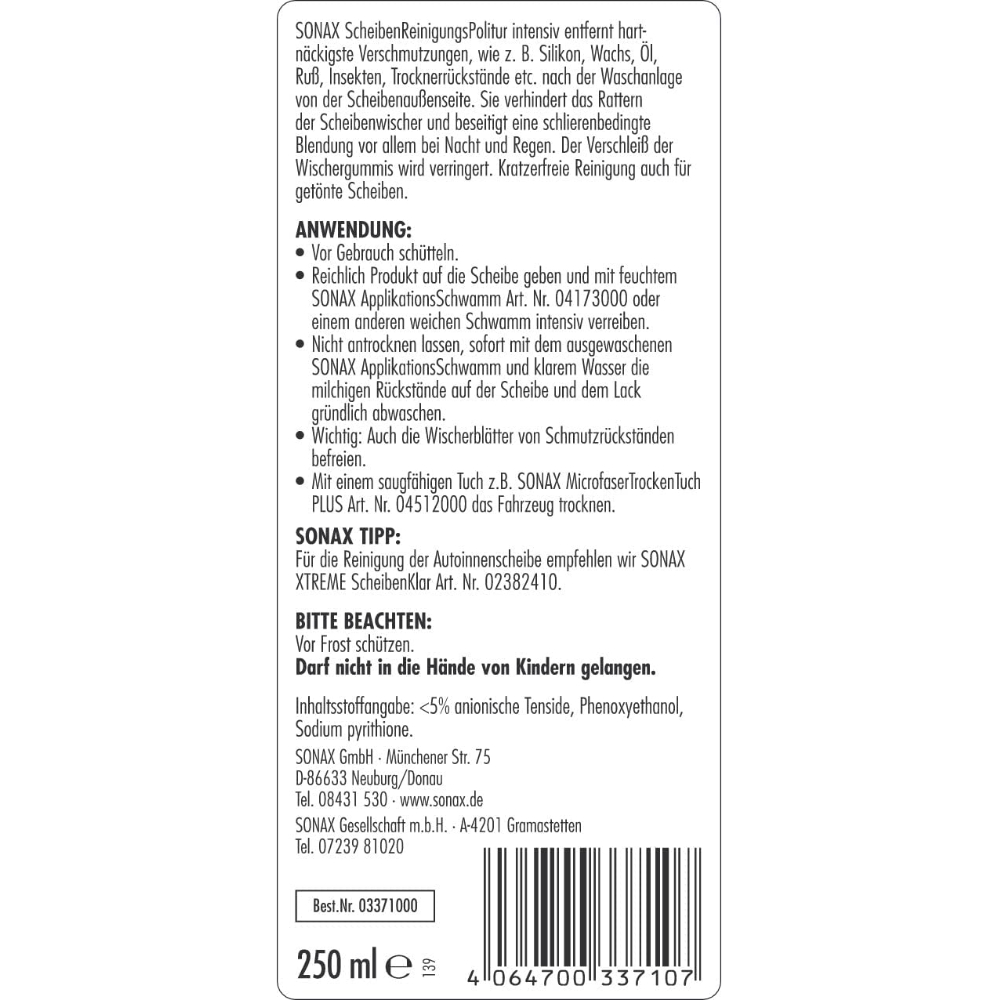 SONAX Scheiben Reinigungs Politur intensiv поліроль для глибокого очищення скла 250 мл