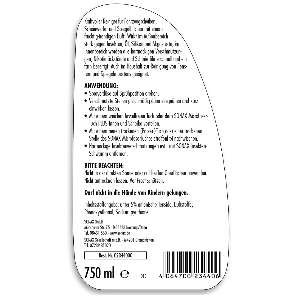 Инструкция: очиститель стекла SONAX 234 400