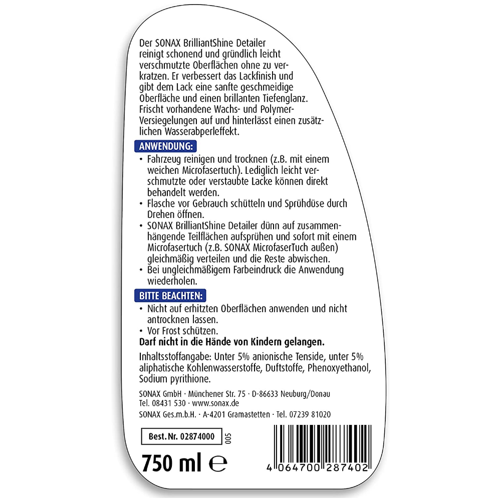- Распылите SONAX Brilliantshine Detailer тонким слоем на небольшие участки и сразу же равномерно распределите салфеткой из микрофибры и вытрите остатки средства;