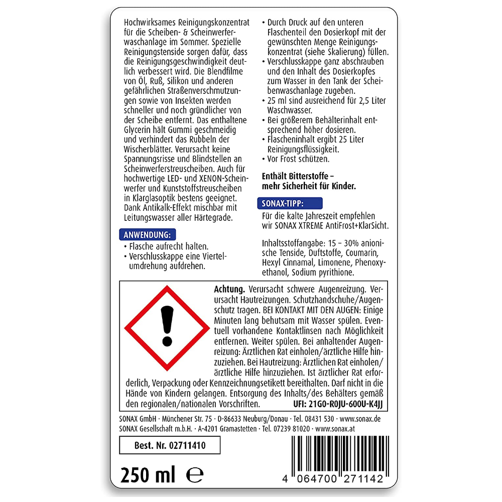 Инструкция: летний концентрат омывателя SONAX XTREME 271 141